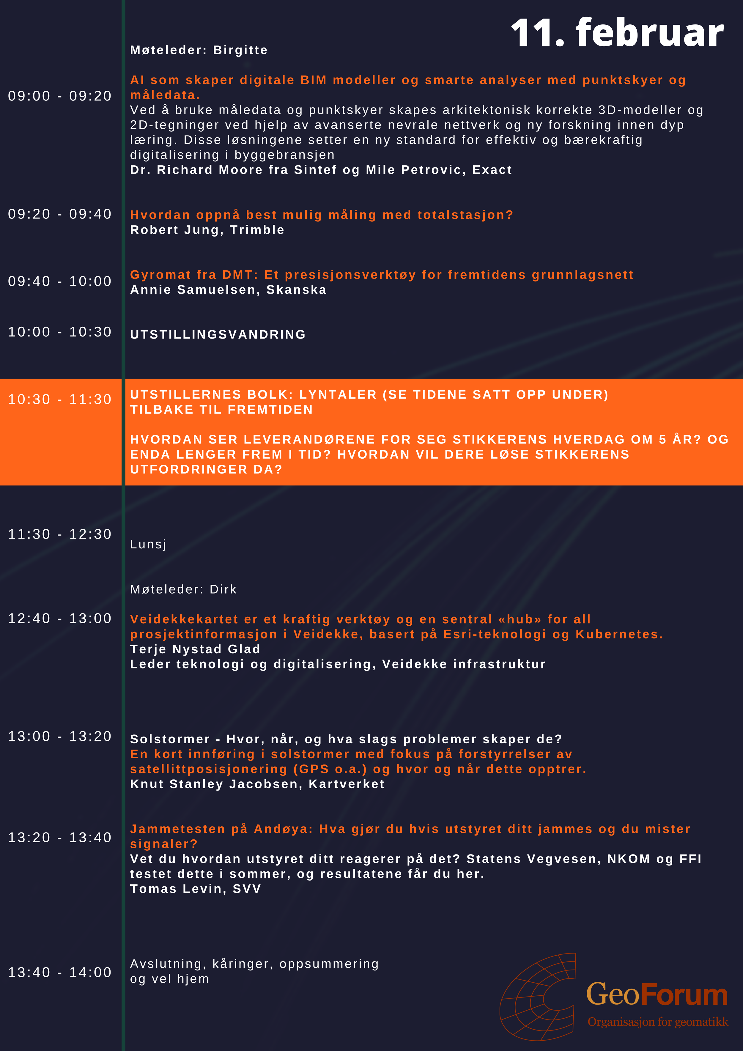 Lyntaler (som foregår dag 2). Dette er korte foredrag fra utstillerne under tema